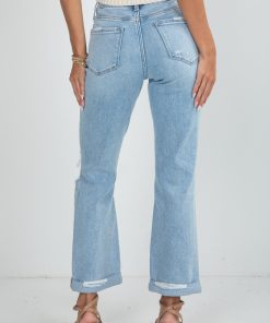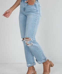Keep it cool and casual in the Alex Light Wash High-Rise Distressed Straight Leg Jeans! Designed with a flattering high-rise fit, these jeans feature subtle distressing and a straight leg silhouette for that effortlessly laid-back vibe. The cuffed hems add a touch of edge, making them perfect for pairing with sneakers and a tee or dressing up with heels and a blouse!