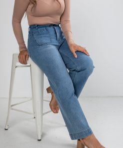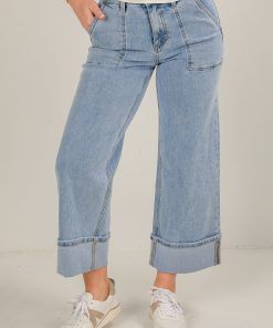 Camille Light Wash High-Rise Cuffed Wide Leg Jeans