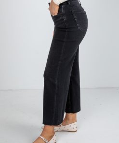 FINAL SALE – Aileeah Black High-Rise Slim Wide Leg Jeans