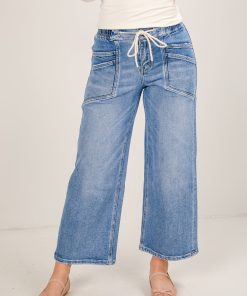 FINAL SALE – Sutton Medium Wash High-Rise Drawstring Wide Leg Jeans