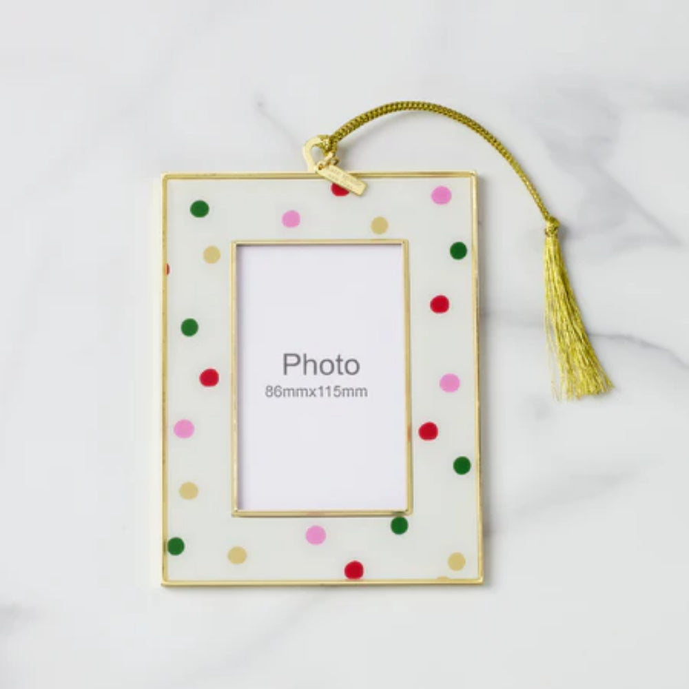 Full of joy and made to elevate holly jolly holidays, this mini frame ornament from kate spade new york is perfect for playful Christmases. Spread cheer when you gift it with a special photo inside!