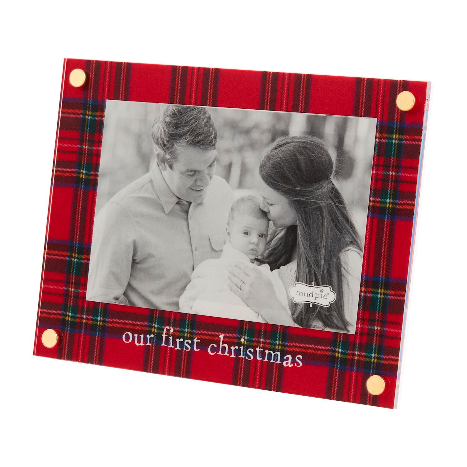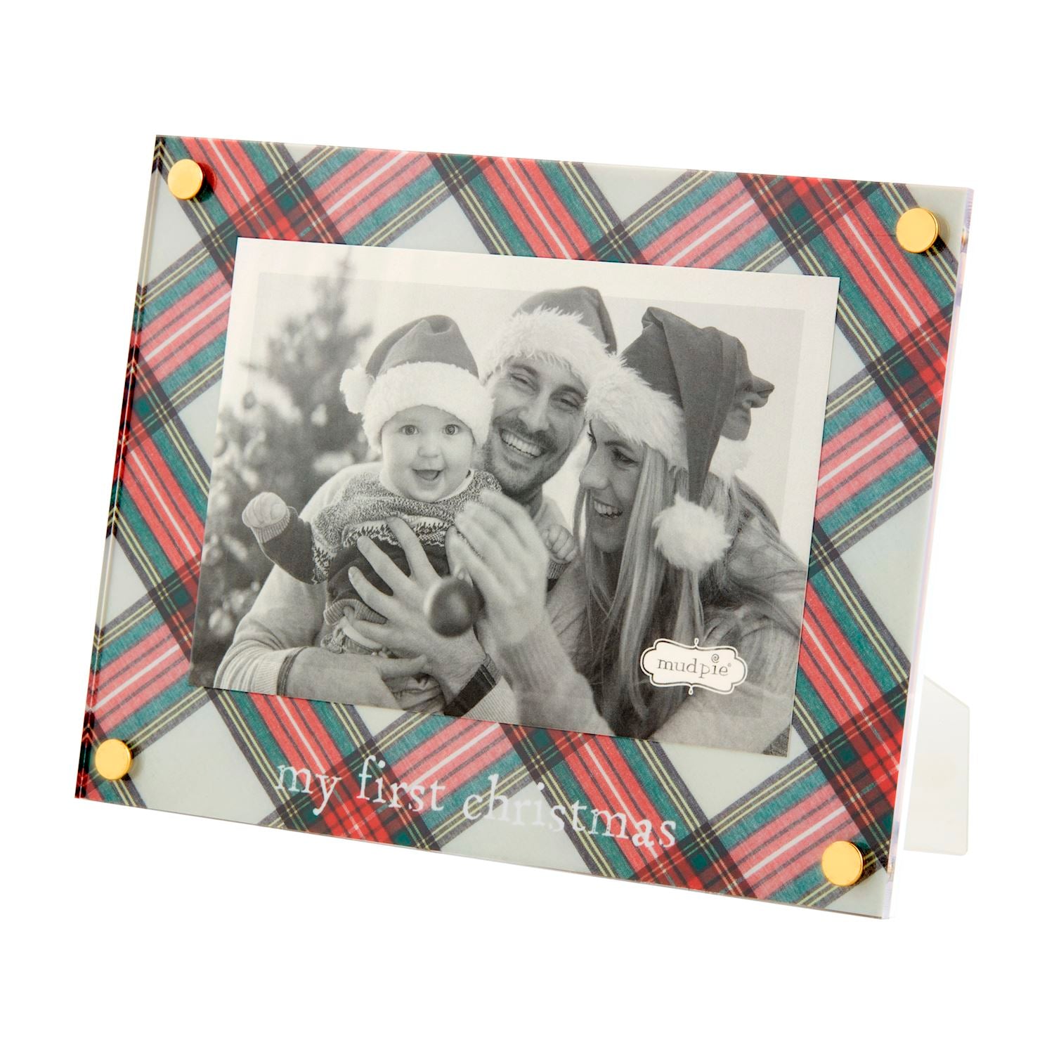 3 Styles. Acrylic 4″ x 6″ frame features tartan matting and gold corner rivets. Easel back
