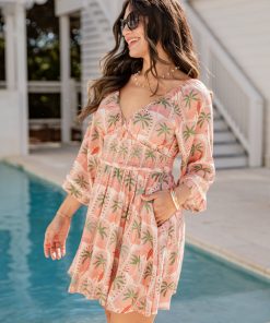 This Palm Breeze Coral Printed Mini Dress features a relaxed silhouette with soft palm-inspired detailing that gives effortless vacation energy. Designed with lightweight woven fabric and an easy, flowy fit, it’s perfect for warm days, brunch dates, or casual weekend outings. Pair with sandals or sneakers for a laid-back, polished look.