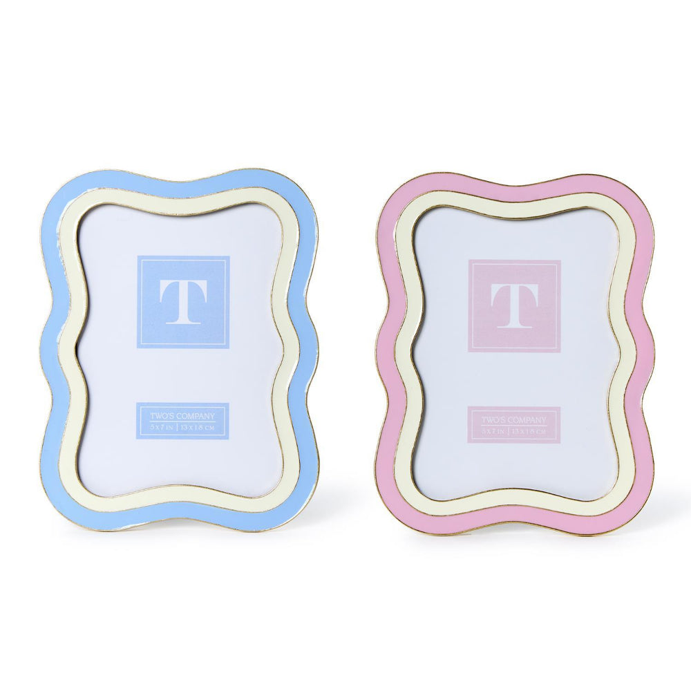 Handcrafted to perfection, this piece is not just a frame but a statement decor accessory. Each frame, available in Blue/White or Pink/White, features a mesmerizing wave pattern that adds a touch of coastal charm to any space. Whether displaying family portraits or vacation snapshots, this frame stands elegantly either horizontally or vertically.