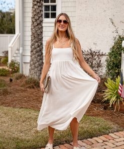 Want It All Sleeveless Off White Midi Dress