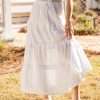 This Whispering Breeze Off White Tiered Midi Skirt features a flowy silhouette designed for movement and ease. Crafted from lightweight fabric with soft tiers, it offers a flattering high-rise waist and effortless drape. Easy to dress up or down, it pairs seamlessly with knits, blouses, or casual tees for an effortlessly chic look.